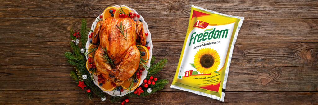 - Now cover the turkey tray with a silver foil and place it in the oven which was preheating and set the oven’s temperature to 180 degrees and let the bird roast until the knife pierced in its thigh comes out clean
