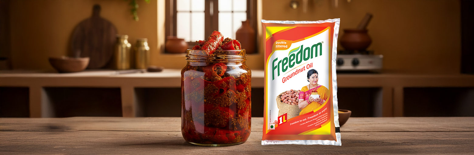 A little urad dal, channa dal, rye, pinch of hing, 4-6methi seeds,2-3 full dry chillies,3-4 cloves of garlic, 2-3 tablespoons freedom groundnut oil